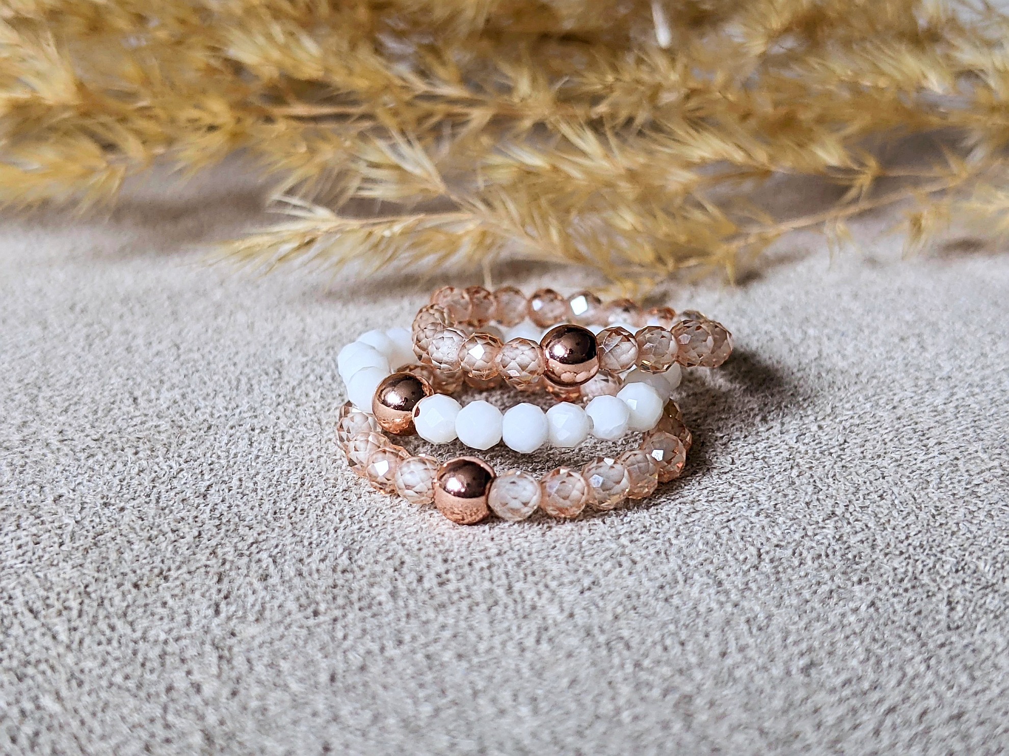 Set prstienkov zo zirkónu a perlete je doplnok, ktorý nádherne oživí vašu opálenú ruku. Jeho súčasťou sú dva prstienky z kubického zirkónu lososovej farby a jeden prstienok z perlete. Všetky prstienky sú doplnené o korálku z ocele vo farbe ružového zlata. Tento set prstienkov z perlete a zirkónu vám ponúka veľmi veľa možností na nosenie, podľa toho ako si prstienky nakombinujete alebo otočíte. Prstene sú na gumičke, takže sa prispôsobia prstu. Tento set prstienkov je vyrobený na obvod prsta cca 5,9 cm. Vnútorný priemer prstienka je 1,7 cm, čo zodpovedá štandardnej veľkosti prstienka č. 53. Ak by ste potrebovali upraviť obvod prstienka, napíšte prosím do objednávky v poznámke jeden z týchto parametrov (buď obvod prsta, veľkosť prstienka, ktorý nosíte alebo vnútorný priemer prstienka, ktorý nosíte).