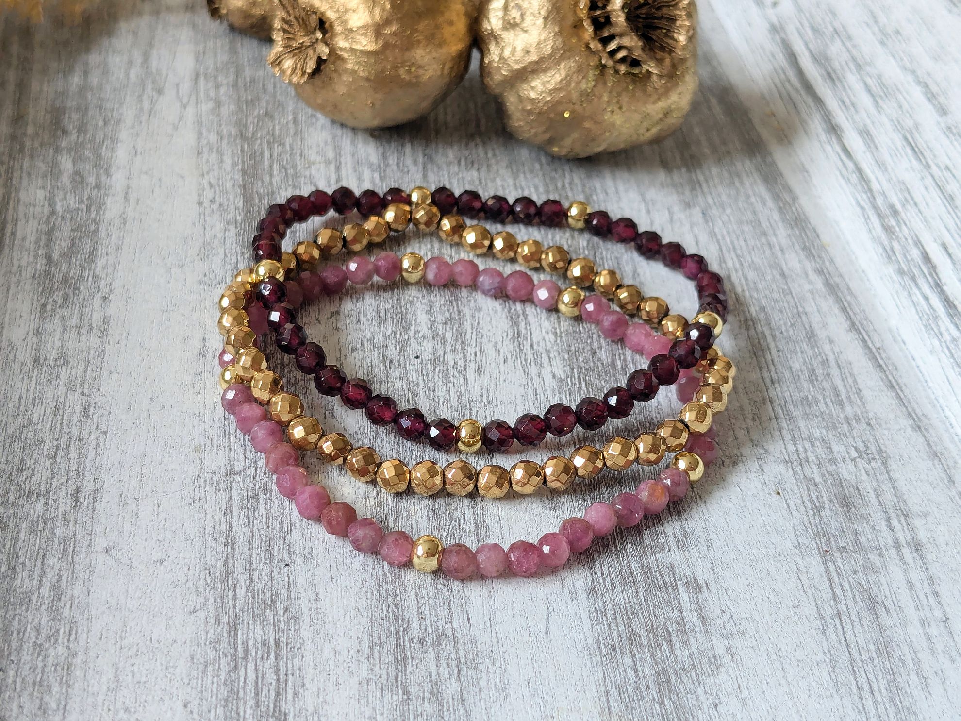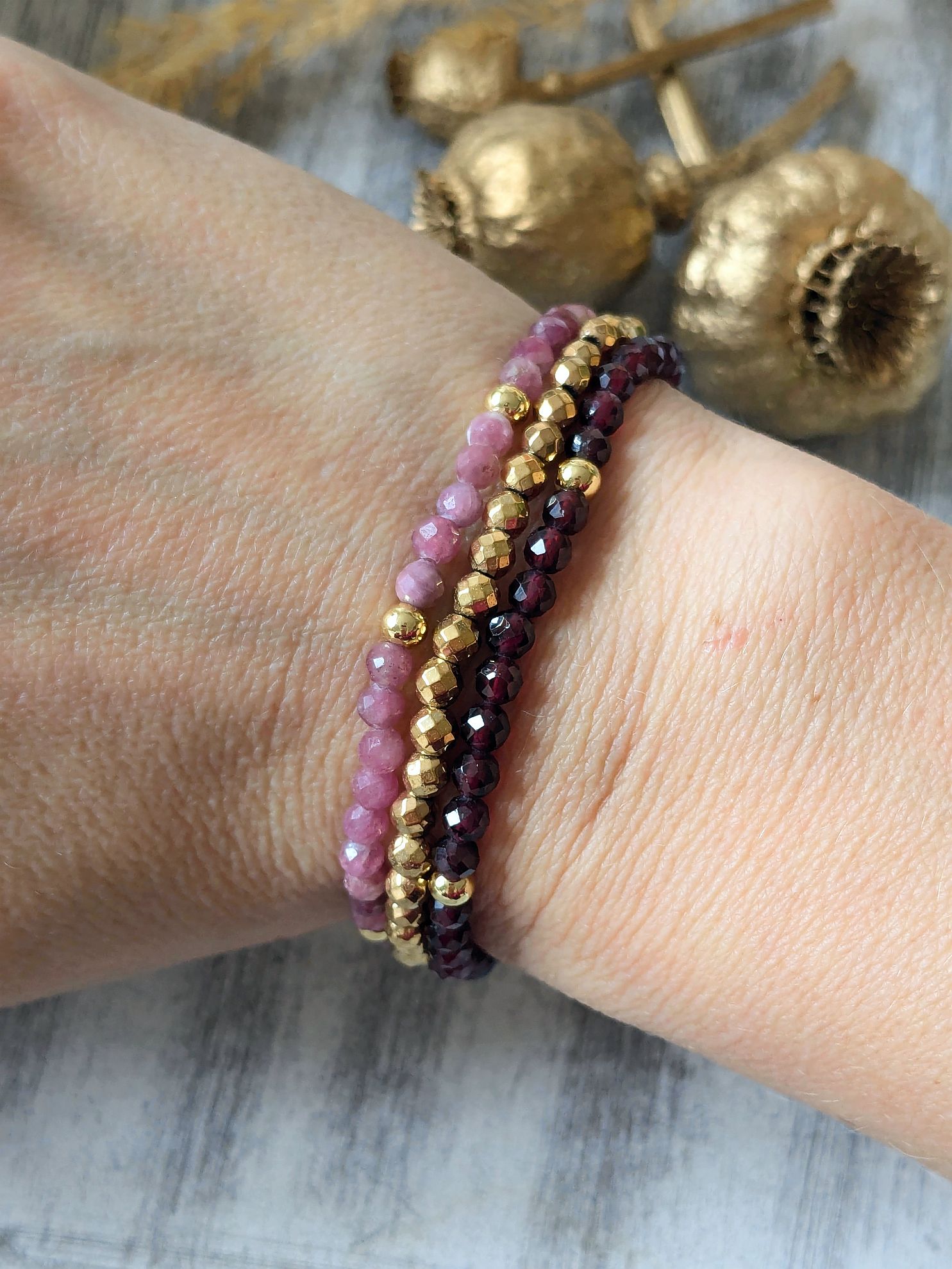Set rubelit a granát je farebne zaujímavý set pozostávajúci z 3 náramkov: